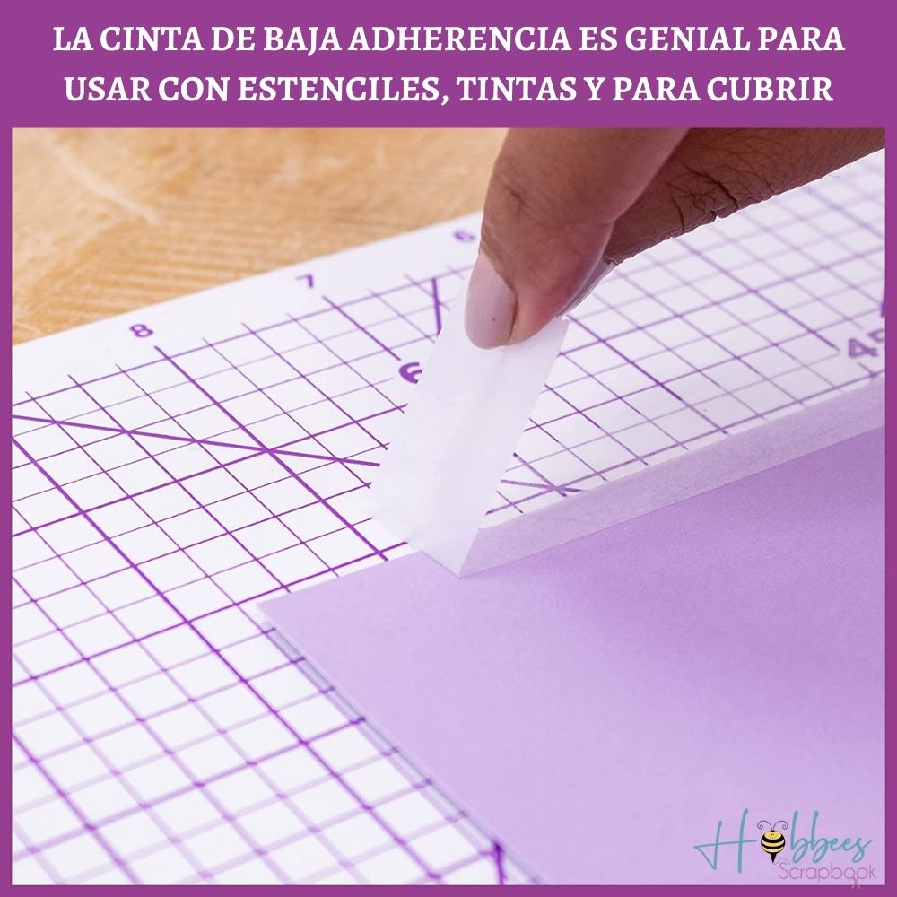 La cinta Low Tack es absolutamente esencial si necesitas adherir materiales temporalmente. Esto lo hace perfecto para usar con plantillas, máscaras y técnicas de entintado.