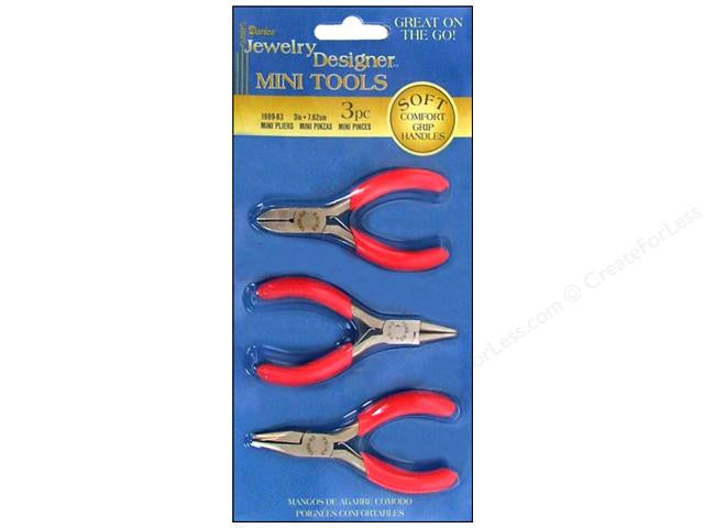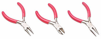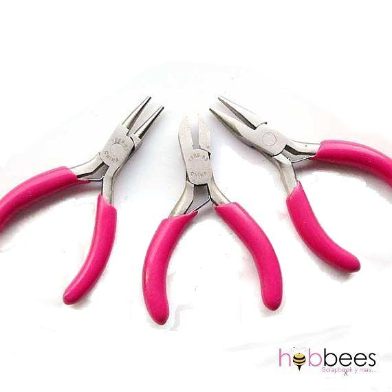 Pinzas para diseño de joyería. Juego de 3 pinzas de acero al carbono de calidad que incluye: redonda, de nariz plana y cortadora. Asas suaves y cómodas. Ideales para trabajar joyería y cualquier otra maualidad. Miden 7.62cm cada una
