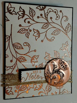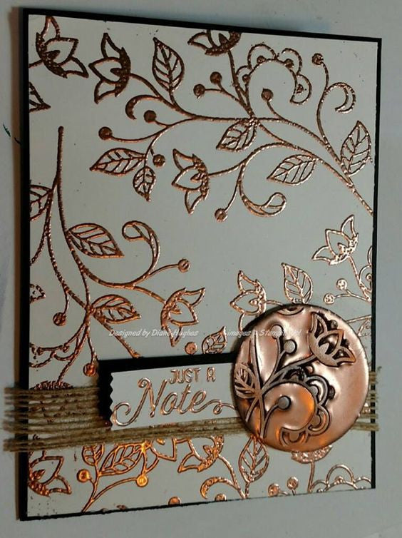 Con una tinta de secado lento, humedece y estampa tu sello favorito, después cubre con tus polvos de embossing, no escatimes, permite que se cubra todo muy bien. Estos se pegarán únicamente a la tinta, después sacude todo el restante sobre una charola Tray Mate. Y ahora con una pistola de aire caliente (heat gun o heat tool), funde los polvos y listo, obtienes un acabado realzado, muy parecido a la serigrafía.